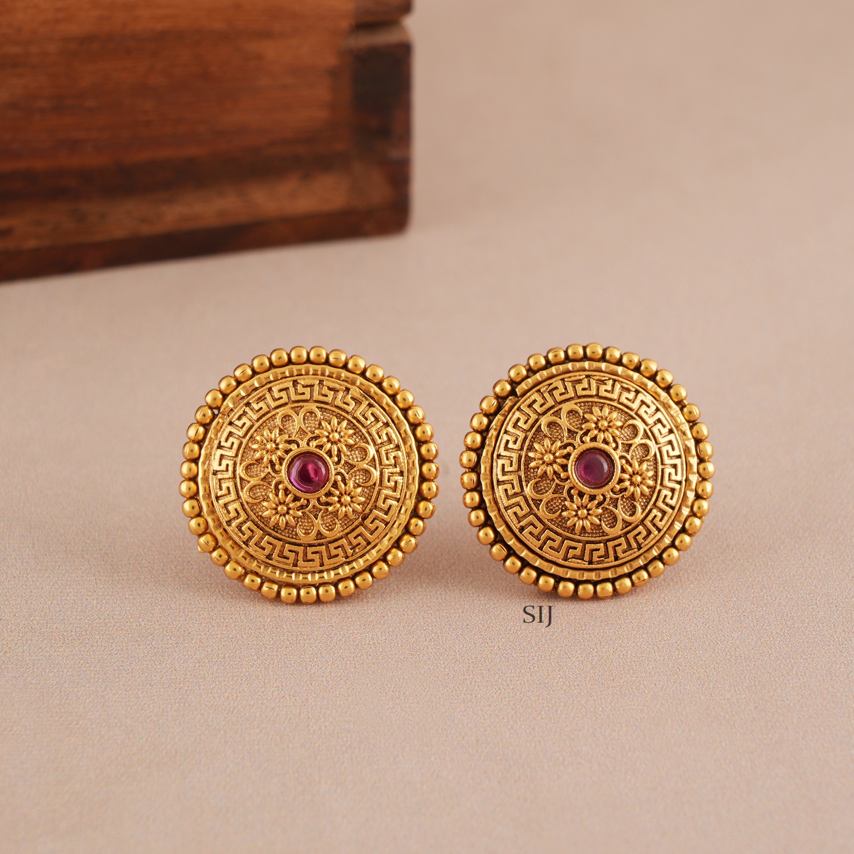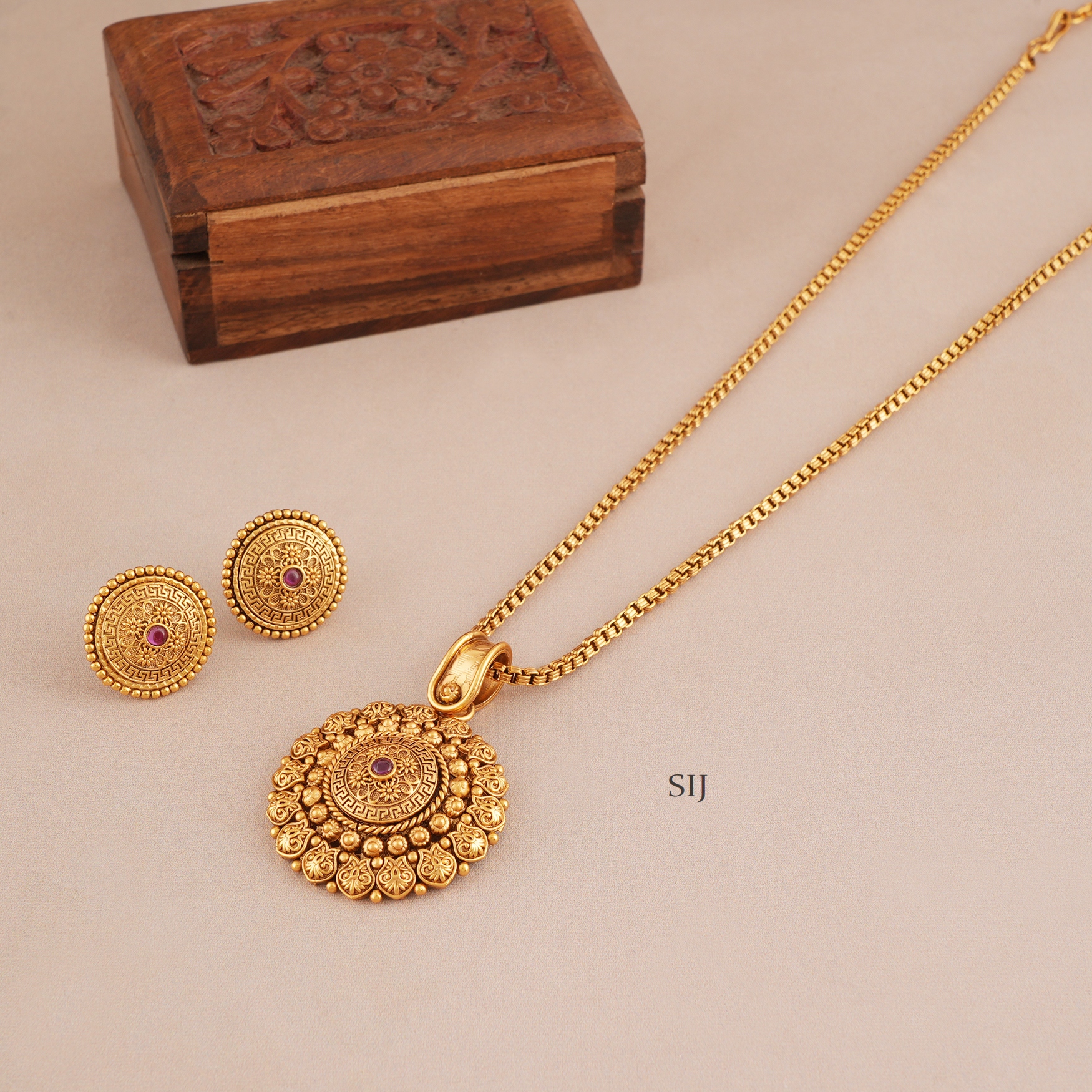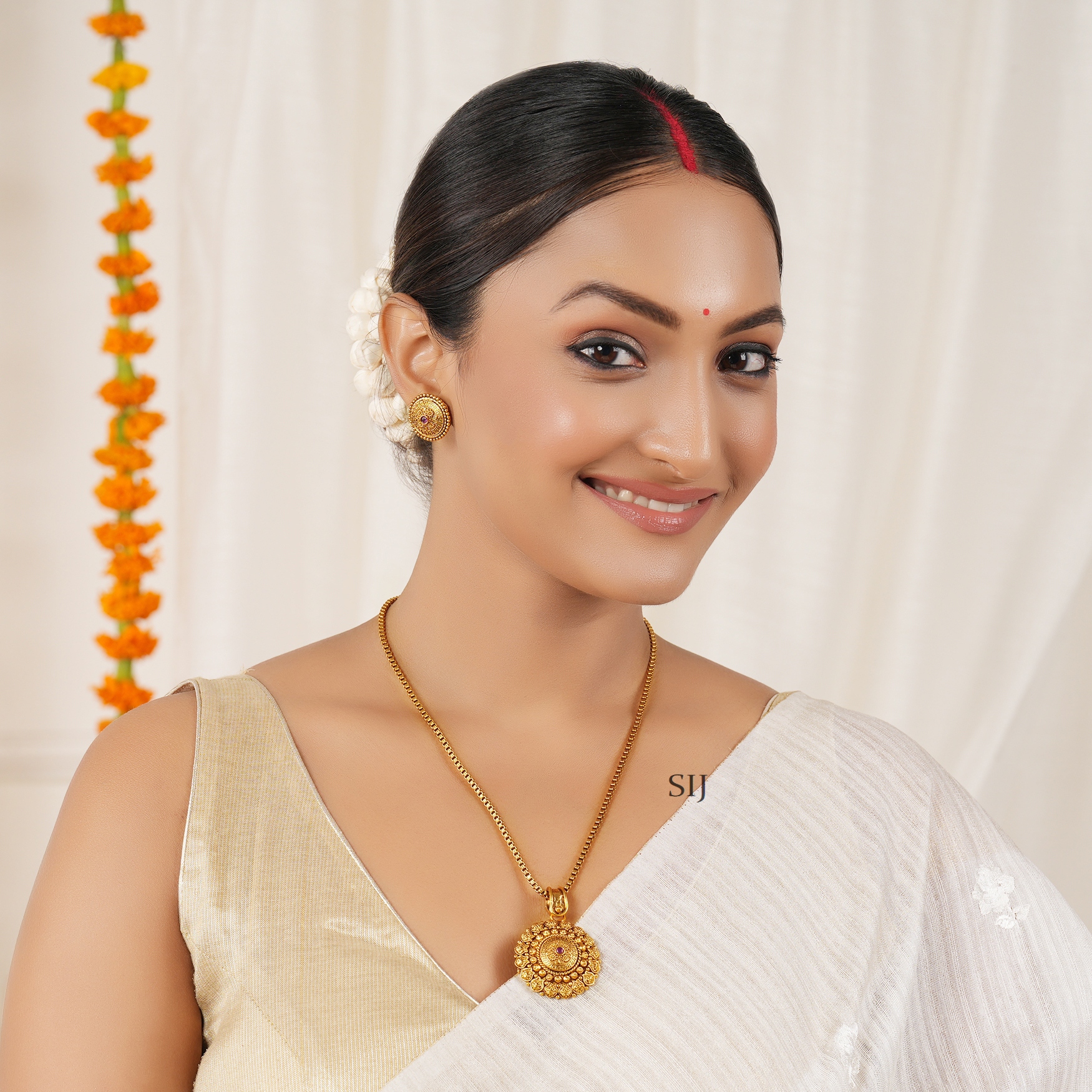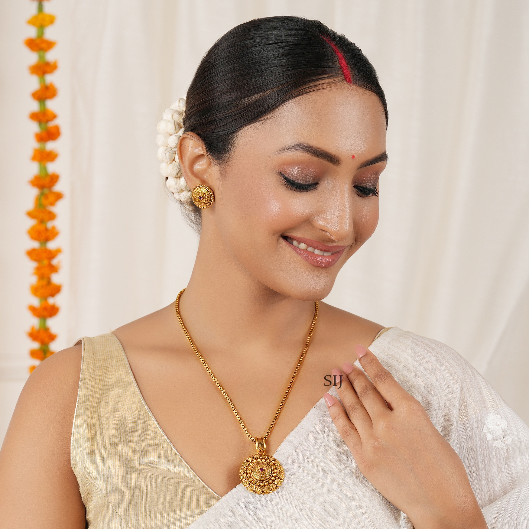 An antique gold plated simple dollar chain is a timeless piece designed for women who prefer elegance in everyday wear. Its minimal look makes it easy to pair with sarees, salwar suits, or lehengas without overpowering the outfit. The lightweight design also ensures comfort while keeping a traditional touch.